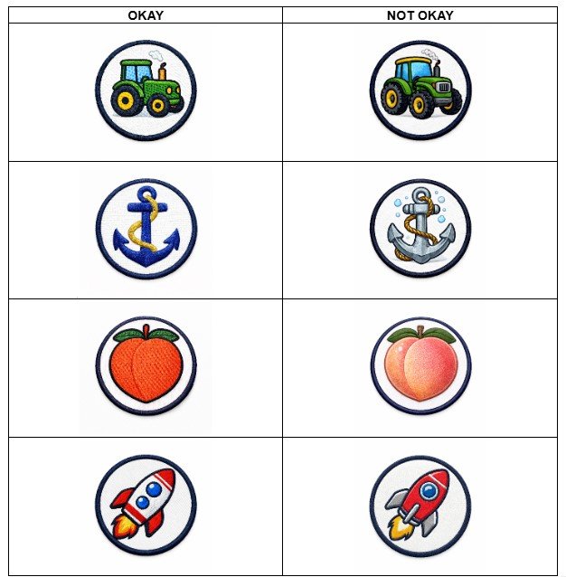 If text is included, letters must be ≥ 7 mm height and embroidered (not printed).