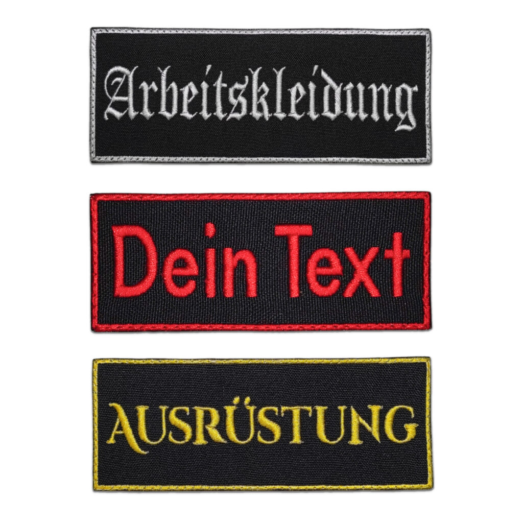 Auf unserer Website können Sie bestickte Aufnäher mit Ihrem eigenen Logo oder Wunschtext bestellen. Fordern Sie noch heute Ihr Angebot an.