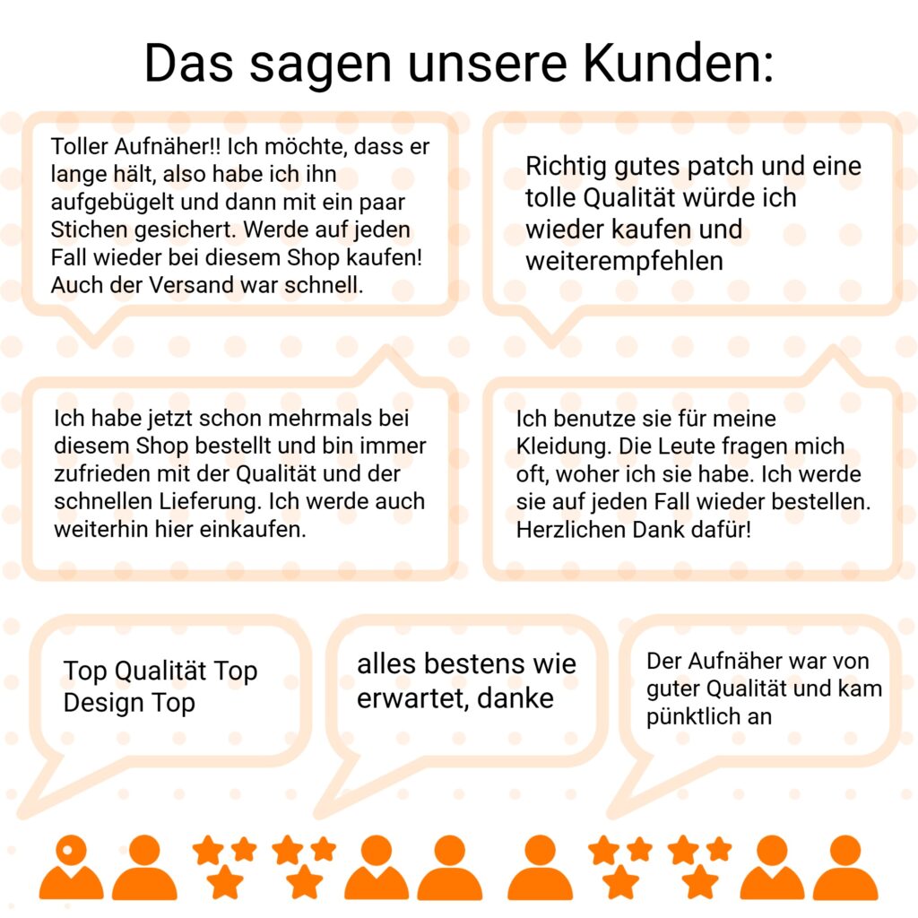 Ob für Unternehmen oder Privatpersonen – unsere individuell gestalteten Aufnäher zeichnen sich stets durch hohe Qualität, transparente Preise und schnellen Versand innerhalb der EU aus. Lesen Sie echte Kundenbewertungen online und bestellen Sie direkt beim Hersteller auf dieser Website.