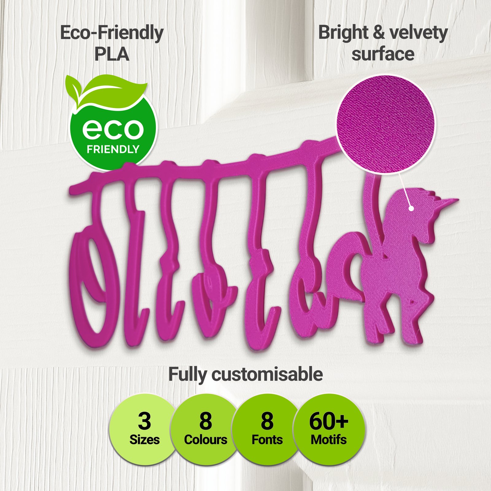 Door Signs with Icons Horse, Dog, Cat, Princess, Unicorn, Car, Gamer, Bike Symbols, 3D Printed 20 – 40 cm All Colors