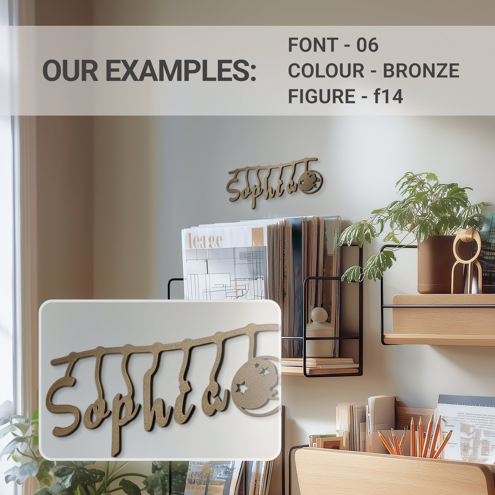 Fully customisable: choose your font from image and size 20-40 cm longer side.