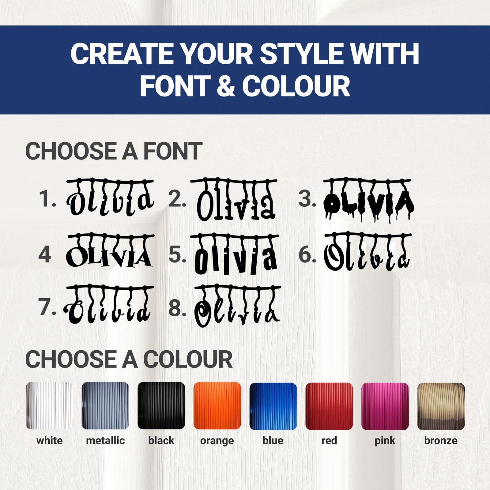 Personalized 3D-printed door signs with different hobby icons from dogs and horses to bikes and gaming. Crafted from durable and eco-friendly PLA plastic. You can select from a wide variety of bright colors and many different sizes to perfectly match your decor and space. Great to label a bedroom, kid room, these signs offer a modern and stylish way to add a bit of personality and flair to any door or wall.